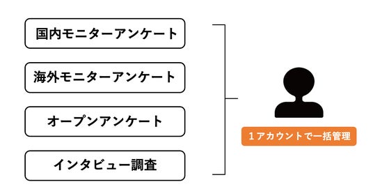 Surveroidでは、モニターアンケートとオープンアンケートを同一アカウントで実施することができます。アンケート種別によるツールの使い分けが不要なため、進捗や請求を一括で管理できるほか、共通の設問作成画面・集計ツールを利用することができます。