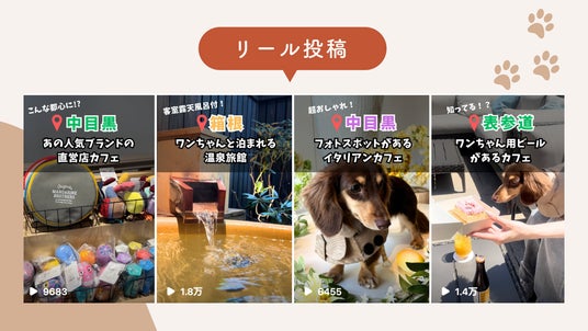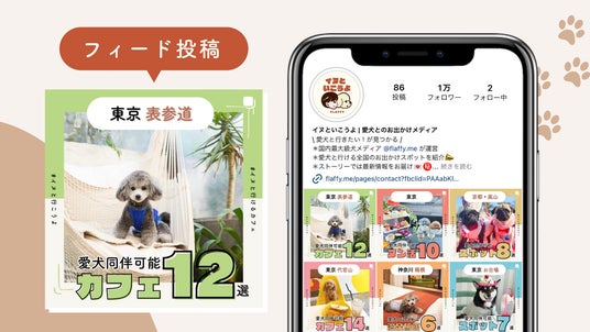 当社は、飼い主さま(ユーザー)と施設やお店(プラットフォーム)を繋ぎ、よりイヌとヒトがフラットに過ごせるための仕組み作りを展開するため、愛犬といきたいに出会える新メディア「イヌといこうよ」を展開しています。『イヌといこうよ』のメディアでは、フィード投稿とリール投稿で「愛犬と行きたい!が見つかる、愛犬と行ける全国のお出かけスポット」を毎日紹介しています。