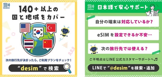 初めてeSIMを利用する方も安心のサポートを提供するために、DeSiMのLINE公式アカウント(@desim)を友達追加していただくことで、さらに詳細なサポート情報やお得なキャンペーン情報を受け取ることができます。ぜひ、この機会に友達追加してください。