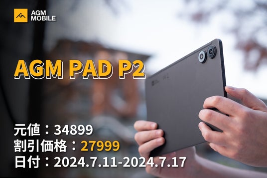AGM Mobileは、Amazon Japan限定で人気のタブレットPAD P2の特別割引を発表いたします。2024年7月11日から7月17日まで、PAD P2を通常価格34,899円から特別価格27,999円でご購入いただけます。