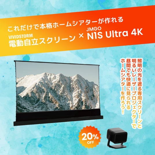N1S Ultra 4K×VIVIDSTORMスクリーンセット 20%OFF4Kで明るく美しい映像をさらに美しく快適に観ることができるスクリーンとプロジェクターのセット