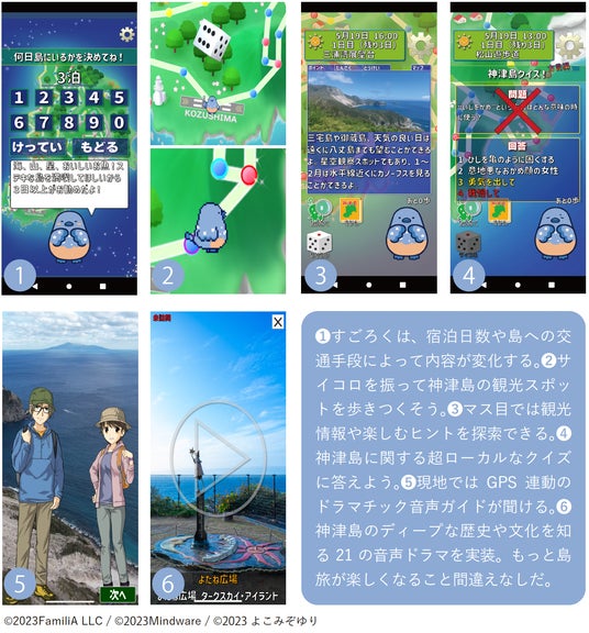 合同会社FamiliA(代表:田中健太郎)は神津島の観光促進を目的とした神津島観光アプリ「まるっと!神津島」のiOS バージョンをリリースしました。本アプリは神津島旅行を擬似体験できる「季節連動すごろく」と、現地で豪華声優による音声案内が聞ける「GPS 連動ドラマチック音声ガイド」をお楽しみいただけます。神津島の美しい自然や文化をより深く理解してもらう契機を作りつつ、訪れる人に特別な神津島体験を提供します。さらに、本アプリは産業の担い手不足などの地域の観光課題を解決することで、サステナブルツーリズムを推進することを目指しています。