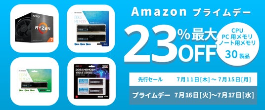 【Amazon プライムデー】AMDのCPUやCFD販売のメモリ30製品が最大23%オフ!7/11(木)からAmazonプライムデー先行セール開催!