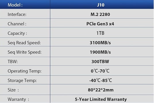 J10 NVMe SSDはECC技術、S.M.A.R.T.機能、不良ブロック管理、RAIDとLDPC機能、TRIMなどの機能が付いており、データの保護と完全性を確保します。