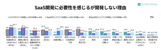 勤め先でのSaaS開発について「必要性を感じるが、現在開発をしていない」と回答した方に対し、その理由についても調査いたしました。