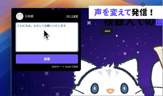 AIによるテキスト読み上げ機能で、自分の声ではなく好きなキャラクターの声で会話が楽しめるミァ!