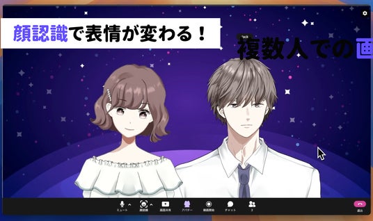 顔の表情をリアルタイムで捉えてアバターに反映させる顔認識機能も!(※顔の映像が相手に送られることはないミァ!)