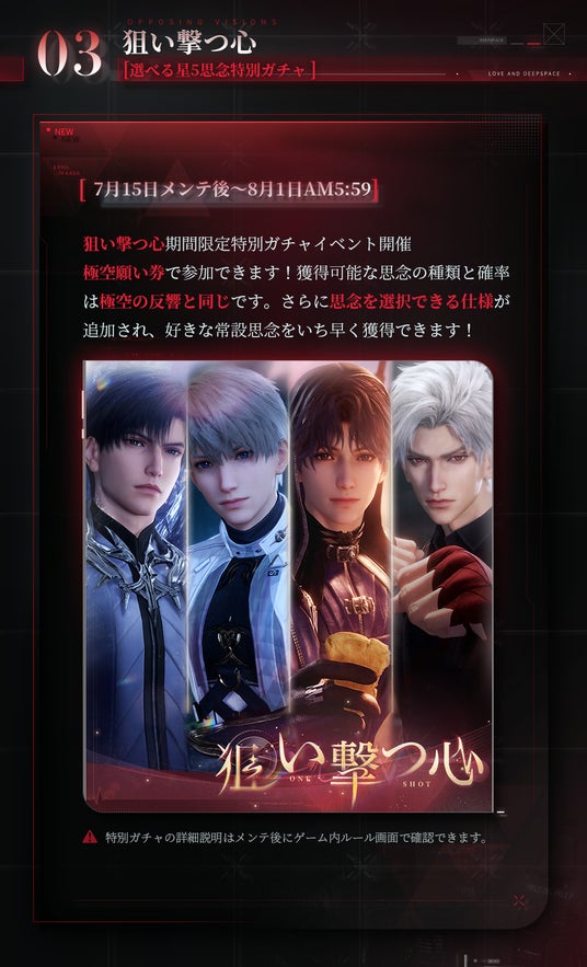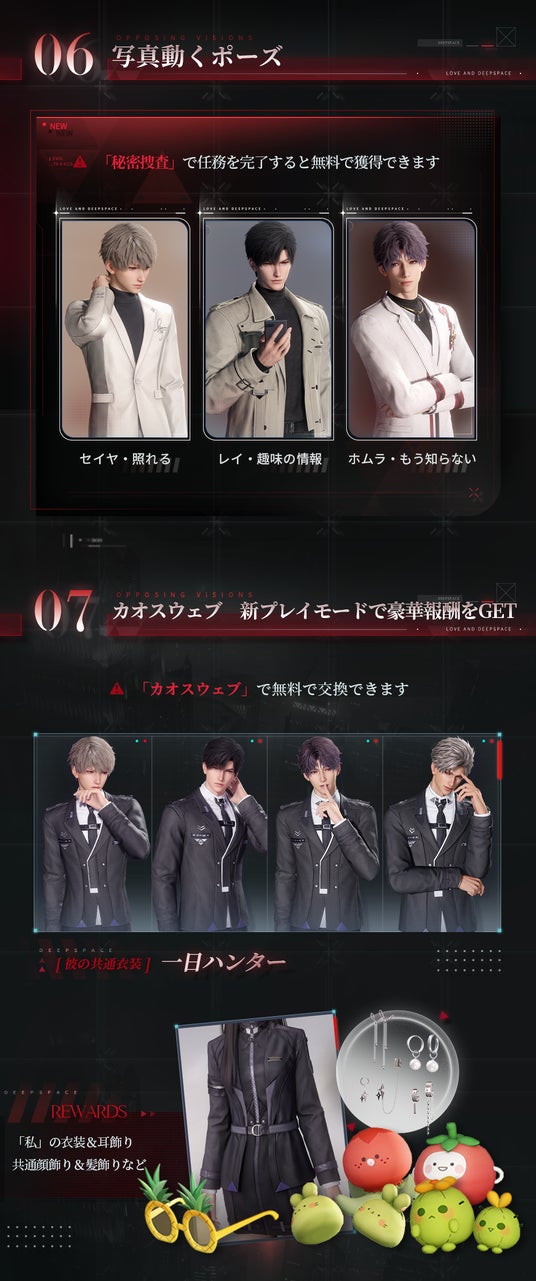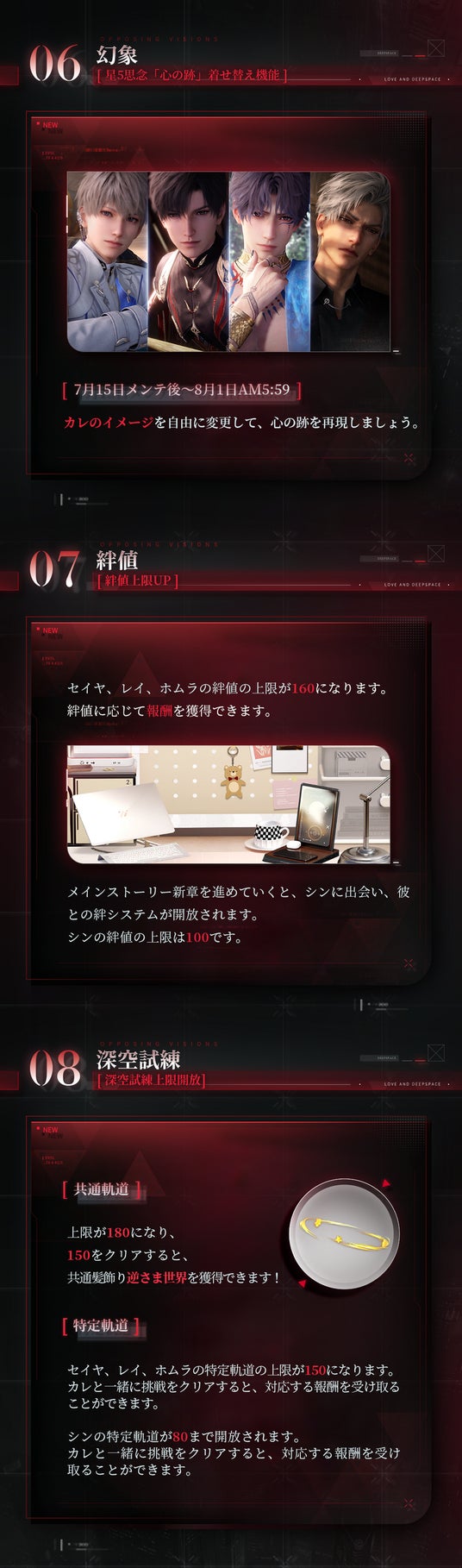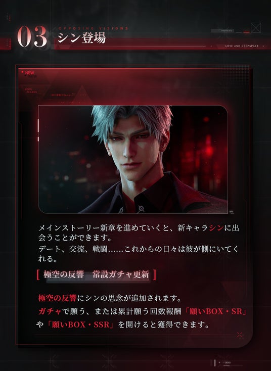 INFOLD PTE. LTD.は、全世界1億DLを突破した『恋とプロデューサー』の世界観を継承した完全新作恋愛シミュレーションゲーム『恋と深空』において、7月15日(月)13時よりVer2.0「交差する視界」を実装することをお知らせいたします。