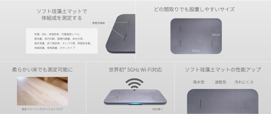 「スマートバスマット 体組成計モデル」は、特許技術により体脂肪等の体組成項目がバスマットの上から測定可能となったほか、小型化や構造を改善し昨今の住宅事情に対応、さらに家庭用体組成計では世界初となるWi-Fi 5GHzに対応し、より幅広い環境で利用できるようになりました。6月20日から開始した先行予約販売では、1週間で1,000台が完売し、好評につき追加で1,000台の先行予約販売を行いました。