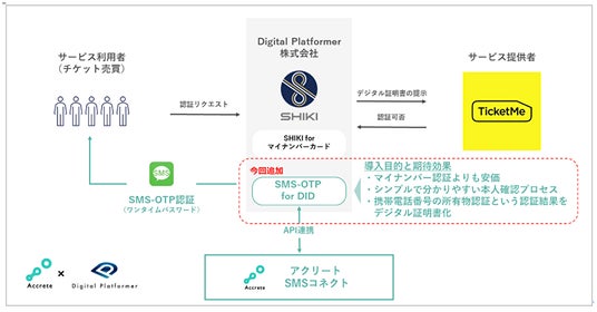Digital Platformer株式会社(本社:東京都千代田区、代表取締役CEO:松田一敬、以下「当社」)と株式会社アクリート(本社:東京都千代田区、代表取締役社長:田中優成、以下「アクリート」)は、このたび、当社の分散型ID(DID)基盤(サービス名「SHIKI」)とアクリートが提供する「SMSコネクト」をAPI連携させ、SMS-OTP(ワンタイムパスワード)による携帯電話番号の所有物認証の結果をデジタル証明書とする「SMS-OTP for DID」を共同で開発し、提供を開始します。