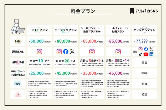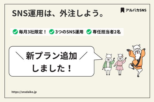 SNS運用は、外注しよう。月額5万円~利用できるSNS運用代行サービス「アルパカSNS」のプラン内容がより選びやすくより充実したサービス内容にグレードアップしました!