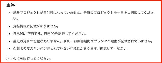 「AIスキルシート診断」機能は、案件を探しているフリーランスの方を対象にした新機能です。スキルシートの作成後、希望者はAIによるレビューを受けることができ、各企業の採用担当者の目に留まりやすいスキルシートの作成が可能になります。