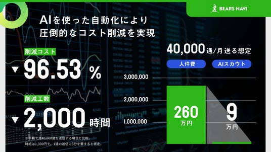 ベアーズナビ株式会社(代表取締役:甲佐 陸空人、本社:東京都渋谷区、以下「ベアーズナビ」)は、このたび、生成AIによる自動スカウト送信サービス、「AIスカウト」を先着100社限定で、3ヶ月の間完全無償で提供させていただきます。