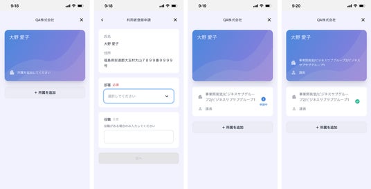 マイナンバーカードの登録情報(4情報)に加え、どこの部署でどんな役職であるかの情報を反映させるために、「ポケットサイン所属証明」をご利用いただきました。「ポケットサイン所属証明」に部署・役職を事前に登録しておくことで、ユーザーの所属を「ポケットサイン防災」の管理画面に表示させることができます。