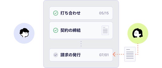 今回リリースした取引共有機能は、取引相手のメールアドレスを入力するだけで取引内容を簡単に共有できる機能です。共有後は、取引の概要や進捗状況、取引の開始日・終了日などを双方が編集できるようになります。