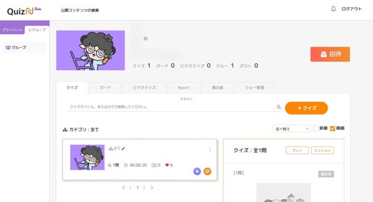 ”Qグループ”では、グループに招待することで、クイズやビデオクイズ、ボードの共有を簡単に行うことができる他、掲示板で情報共有を行うこともできます。