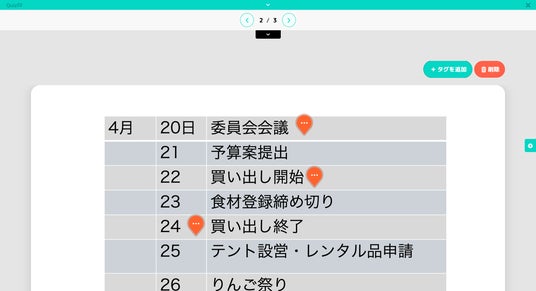 オレンジ色のコメントタグを自由に動かすことで、メモしたいこと、伝達事項などを書き込めます。