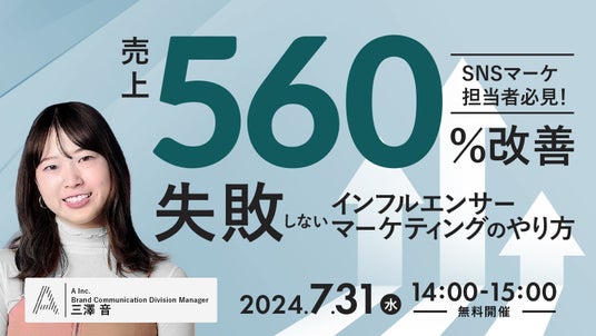 株式会社A(https://acetokyo.com/)は、「 【SNSマーケ担当者必見!】 売上560%改善 『失敗しない』インフルエンサーマーケティングのやり方」と題した無料ウェビナーを7月31日(水)にオンラインで開催します。