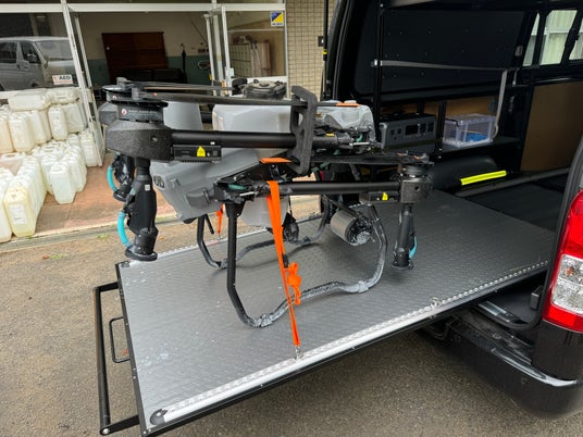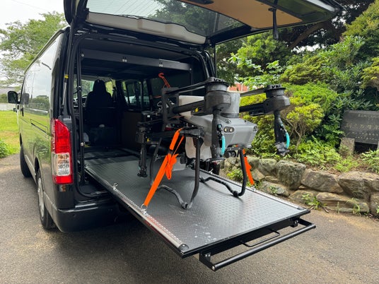 今回の大規模散布を実施するにあたり、ドローン業務に特化した車両が必要でした。この車両なくしては103ヘクタールの散布は不可能です。ドローン業務に特化した車両の必要性は業界内でもあまり論じられてきませんでしたが、これからのドローン業務では新明工業株式会社が製造と設計を行うドローン業務専用車両(ドローンポーター(TM)︎)が必要になるでしょう。新明工業株式会社(本社:愛知県豊田市衣ヶ原3-20、取締役社長:近藤恭弘)と国際ドローン協会が共同開発を行ったドローン業務専用車両(ドローンポーター(TM)︎)を使い、大規模散布を実施しています。今回は農業業務に特化した車両ですが、空撮、測量、点検、物流などの各ジャンルのドローン業務に特化した車両を開発しています。業務に特化した専用車両を使うことで、さらにドローンの業務を高効率化することが可能です。国際ドローン協会は、空撮はもちろん、点検業務、測量業務、農業、物流とドローン業務の全てのジャンルを実施している国内でも数少ない会社です。豊富なドローン業務の実例が、車両の開発に活かされ、さらに高度な業務を実施することが可能になります。