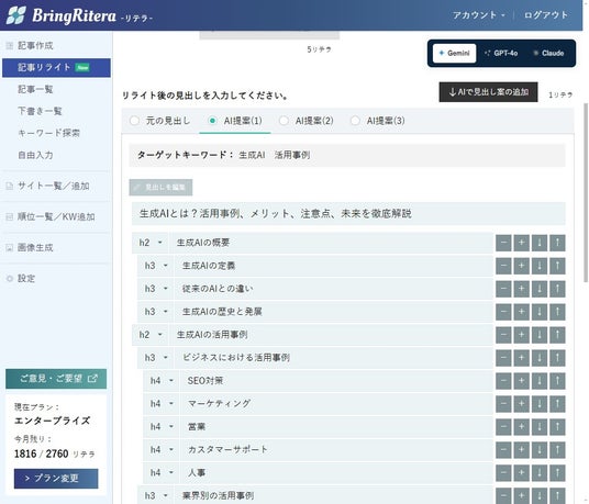 待望のリライト機能リリース!下書き保存機能も!SEOに強いAIライティングツール「BringRitera(リテラ)」