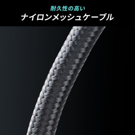 コネクタはL字型になっているため、ポータブルゲーミングPCとの接続がスムーズです。ケーブルが邪魔にならず、スペースを有効活用できます。また、ナイロンメッシュ素材のケーブルは耐久性に優れているので、長期的な使用にも安心です。