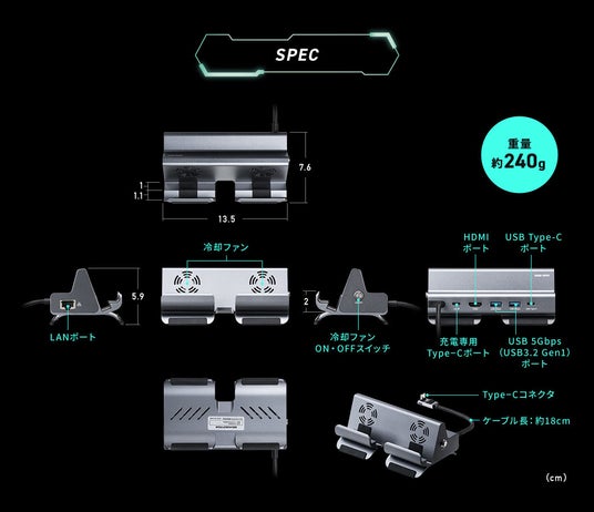 USB PD100Wに対応、冷却ファンを搭載したType-Cケーブル1本でポータブルゲーミングPCを大画面でプレイできるドッキングステーション