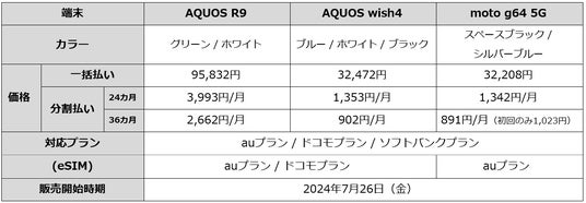 株式会社オプテージ(大阪市中央区)は、携帯電話サービス「mineo(マイネオ)」において、「AQUOS R9」「AQUOS wish4」「moto g64 5G」の販売を2024年7月26日(金)より開始いたします。