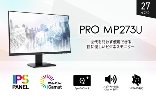 目に優しい機能を豊富に搭載しビジネスに最適な27インチ・4Kモニター広色域表示対応のIPSパネル搭載でクリエイターにもお勧め「PRO MP273U」発売