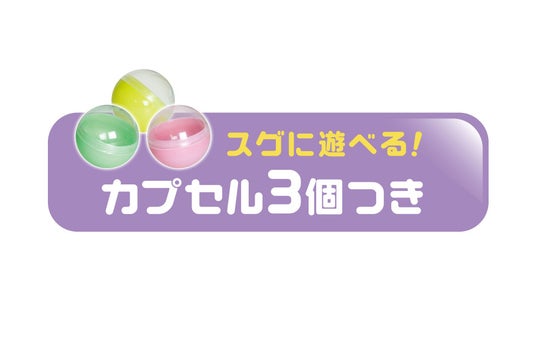 小型のカプセル3個付きで、中に好きな小物を入れて遊べます。個包装のチョコレートやキャンディなどお菓子でも遊ぶことができます。