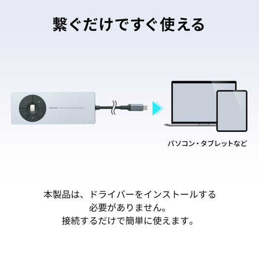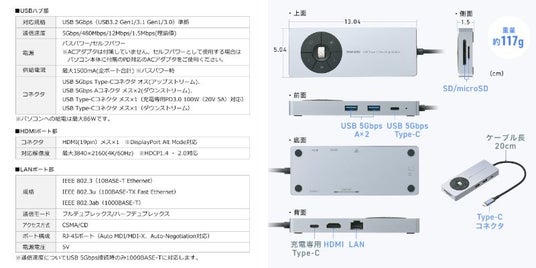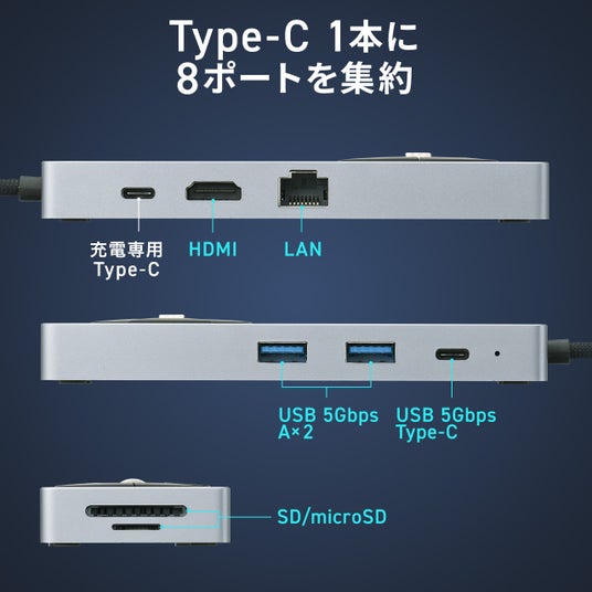 Type-Cケーブル1本で4K出力、USB周辺機器・LAN・カードリーダーの拡張