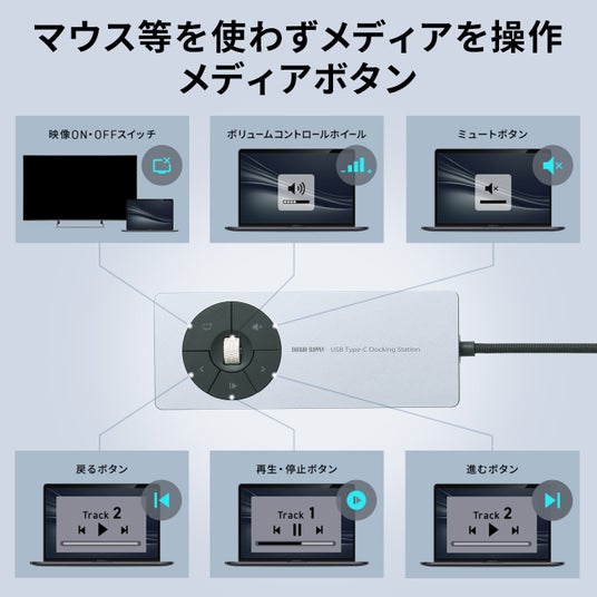 サンワサプライ株式会社(本社:岡山市北区田町1-10-1、 代表取締役社長 山田 和範)が運営している直販サイト『サンワダイレクト』では、音楽や映像の操作ができるメディアコントローラー付きのドッキングステーション「400-DKM1GM」を発売しました。