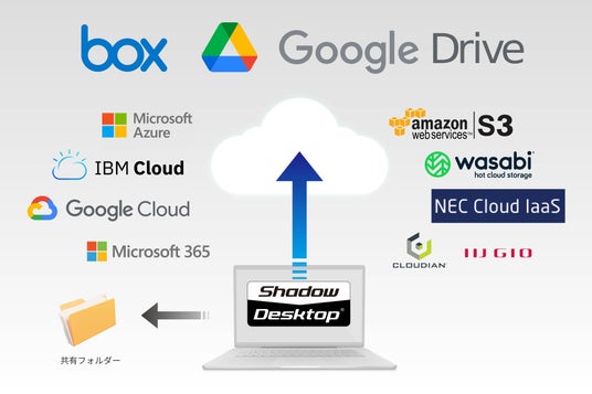 PCのデータレス化による高いセキュリティとFAT-PCの利便性を両立する「Shadow Desktop」は、これまでamazon S3やMicrosoft365など様々なクラウド環境に対応してきました。この度、大規模ユーザーや文教・自治体ユーザーからの要望が多かったBox および Googleドライブに対応することで、ユーザーの選択肢を増やし、更なる利便性の向上・導入のしやすさを実現するものです。