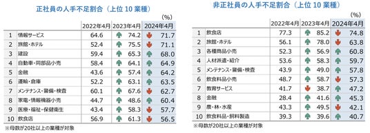 正規社員・非正規社員ともに高水準で2位2024年4月帝国データバンク調べ