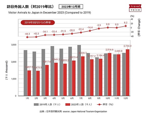 2023年12月にコロナ前の訪日客記録を更新2023年12月トラベルボイス観光産業ニュース調べ