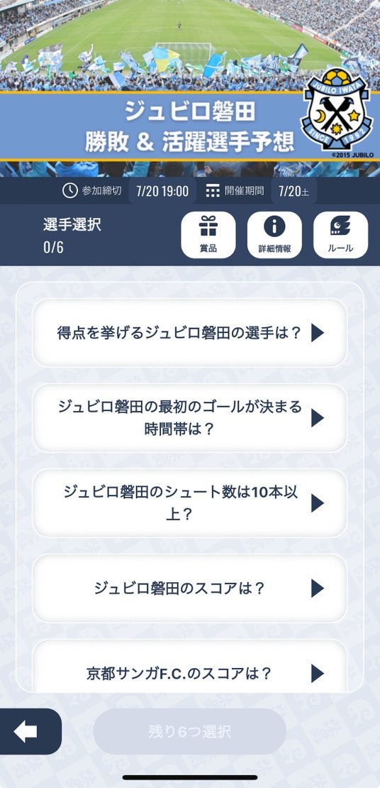 7月20日(土)京都サンガF.C.戦のジュビロ磐田公認 試合展開・活躍選手予想をスポーツ予想アプリ「なんドラ」で開催!