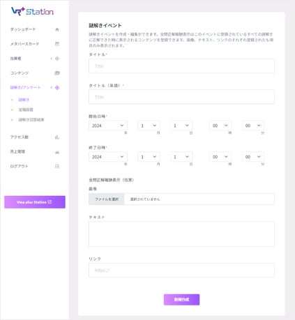 クエストタイプメタバースを使ったイベントを作成できる画面 イメージ