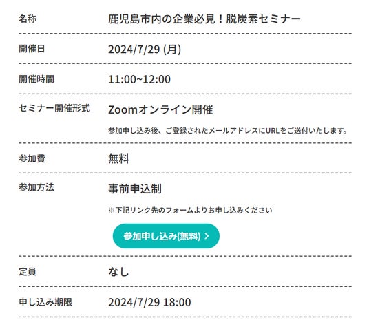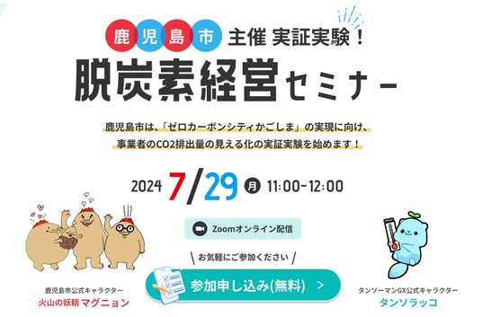 株式会社タンソーマンGXが鹿児島市と連携して「CO2排出量の見える化に関する市内事業者向けの脱炭素経営セミナー」を開催【2024年7月29日(月)11:00~】