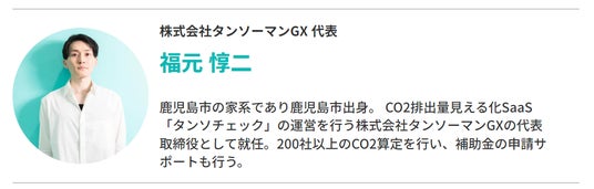 本セミナーでは、株式会社タンソーマンGXの代表、福元氏が登壇。福元氏は、中小企業が直面する脱炭素化の課題とチャンスについて、多くの実績に基づき、脱炭素経営の正しいやり方についてお話しします。