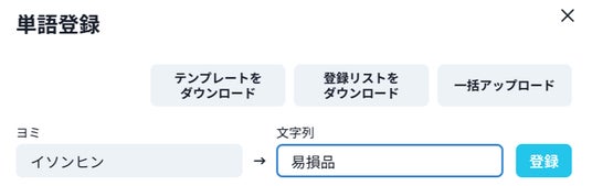 世の中では一般的ではない社内用語や専門用語なども、このように単語登録をすることで文字起こし精度をさらに高めることが可能です。単語を1つずつ登録することはもちろんのこと、CSVによる一括アップロードで登録することも可能です。