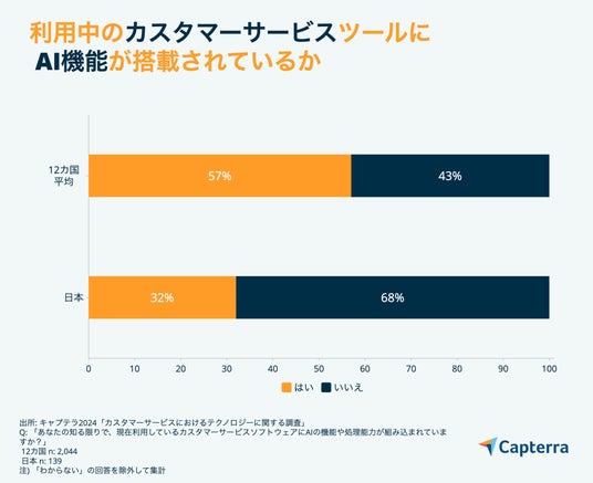 キャプテラ「カスタマーサービスにおけるテクノロジーに関する調査」:利用中のカスタマーサービスツールにAI機能が搭載されているか