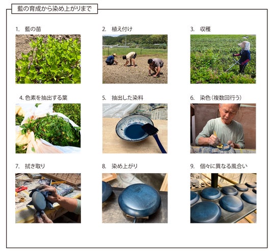 ※ハウジングの染料「本藍」は、葛飾北斎「富嶽三十六景」の青色の一部にも使用されています。藍の育成からハウジングの染め上がりまでの工程は後述を参照ください。
