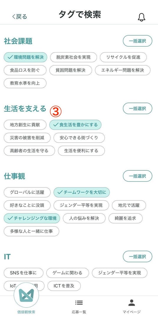 価値観を基準に企業様と学生にこのアプリを活用いただき、