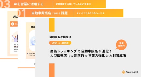 新人からトップセールスを輩出するコネクテッドセールス・プラットフォーム*「Front Agent」を開発・提供するUmee Technologies株式会社(本社:東京都調布市、代表取締役:新納 弘崇、以下「ユミー」)は、対面商談の機会の多い自動車販売店向けに、商談AIを活用し商談トラッキングで自動車販売を進化させ、大型販売店での効率的な営業力強化と人材育成法をまとめた2024年7月最新版の活用事例付きハンドブックを公開いたしました。