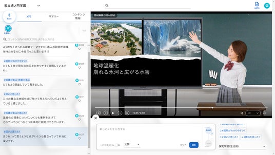 ・生徒同士で同じ動画にコメント・タグをつけ合えるのが良いと思いました。(生徒)