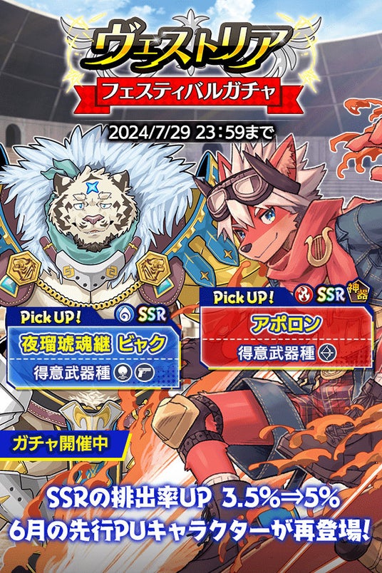 SSRの入手確率が大幅にUPした「ヴェストリアフェスガチャ」が開催!