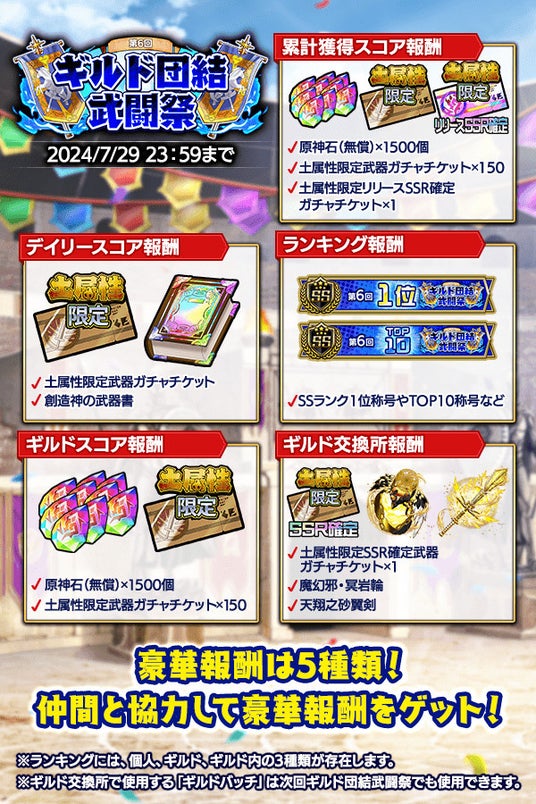ギルドメンバーと力を合わせて豪華報酬を獲得するイベント「ギルド団結武闘祭」が開催!