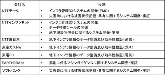 株式会社NTTデータ(以下、NTTデータ)、エヌ・ティ・ティ・インフラネット株式会社(以下、NTTインフラネット)、東日本電信電話株式会社(以下、NTT東日本)、東京ガスネットワーク株式会社(以下、東京ガスNW)、東京電力パワーグリッド株式会社(以下、東電PG)、株式会社EARTHBRAIN(以下、EARTHBRAIN)及びソフトバンク株式会社(以下、ソフトバンク)の7社は、国立研究開発法人新エネルギー・産業技術総合開発機構(以下、NEDO)が公募した「産業DXのためのデジタルインフラ整備事業/デジタルライフラインの先行実装に資する基盤に関する研究開発」における以下のテーマの実施予定先に採択されました。