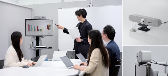 ▲ 広い会議室をカバーできるカメラに加え、ビームフォーミングマイクと最大5Wスピーカーで大人数の会議をしっかりサポート
