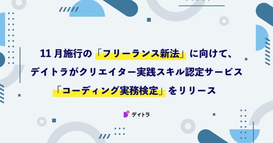 11月施行の「フリーランス新法」に向けて、デイトラがクリエイター実践スキル認定サービス「コーディング実務検定」をリリース