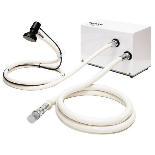 この洗浄マシン(FOAMY)は、超微細な泡で犬の被毛や皮膚の汚れを優しく強力に落とし、少量の水とシャンプーでペットにも環境にも優しい次世代型シャンプーマシンです。